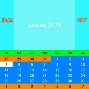 Een simpele kalender applicatie die als widgrt ingesteld kan worden.Na installatie moet het via telefoon widgets geselecteerd en toegepast worden.